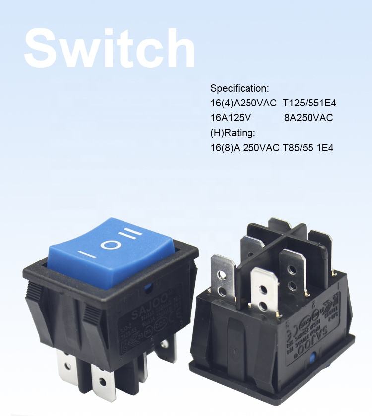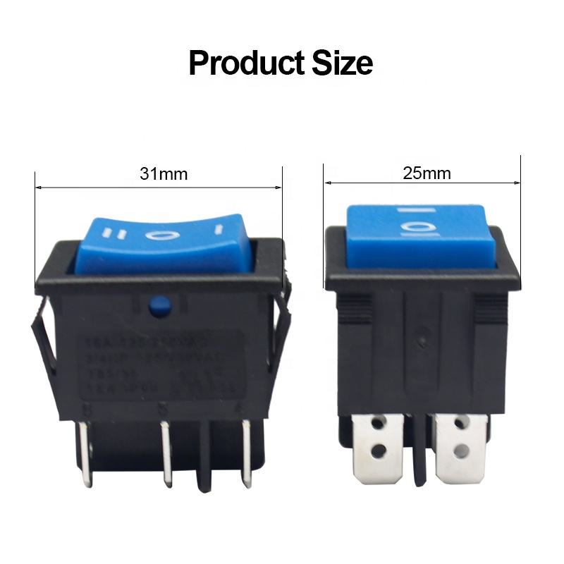 20A 31x25mm DPDT Latching Momentary Rocker Switch 3 Position ON-OFF-ON Blue Panel Rocker Switch
