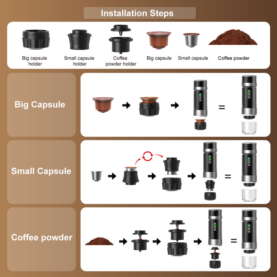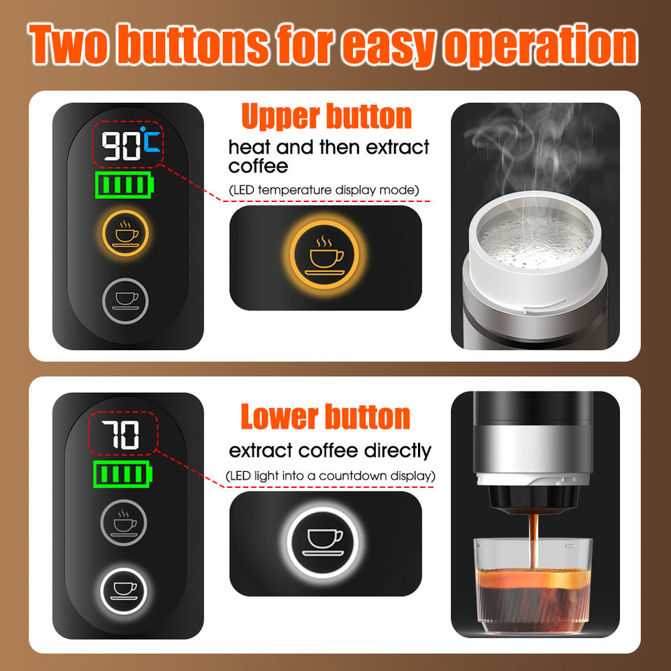 Machine à café à capsules semi-automatique en acier inoxydable auto-chauffante 20 bars, portable, rechargeable, avec écran LED