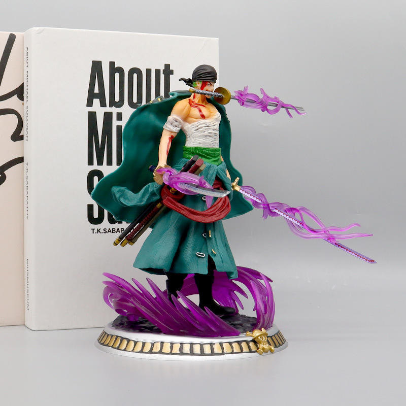 Statues de jouets 20cm sang de bain Roronoa Zoro trois couteaux épée dessin animé Manga Figurine cadeau en plastique artisanat Anime figurines d'action