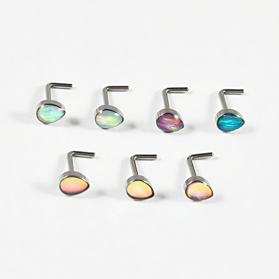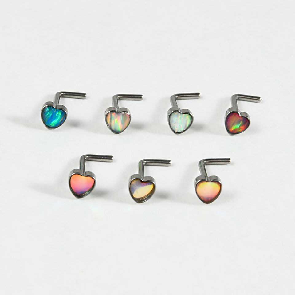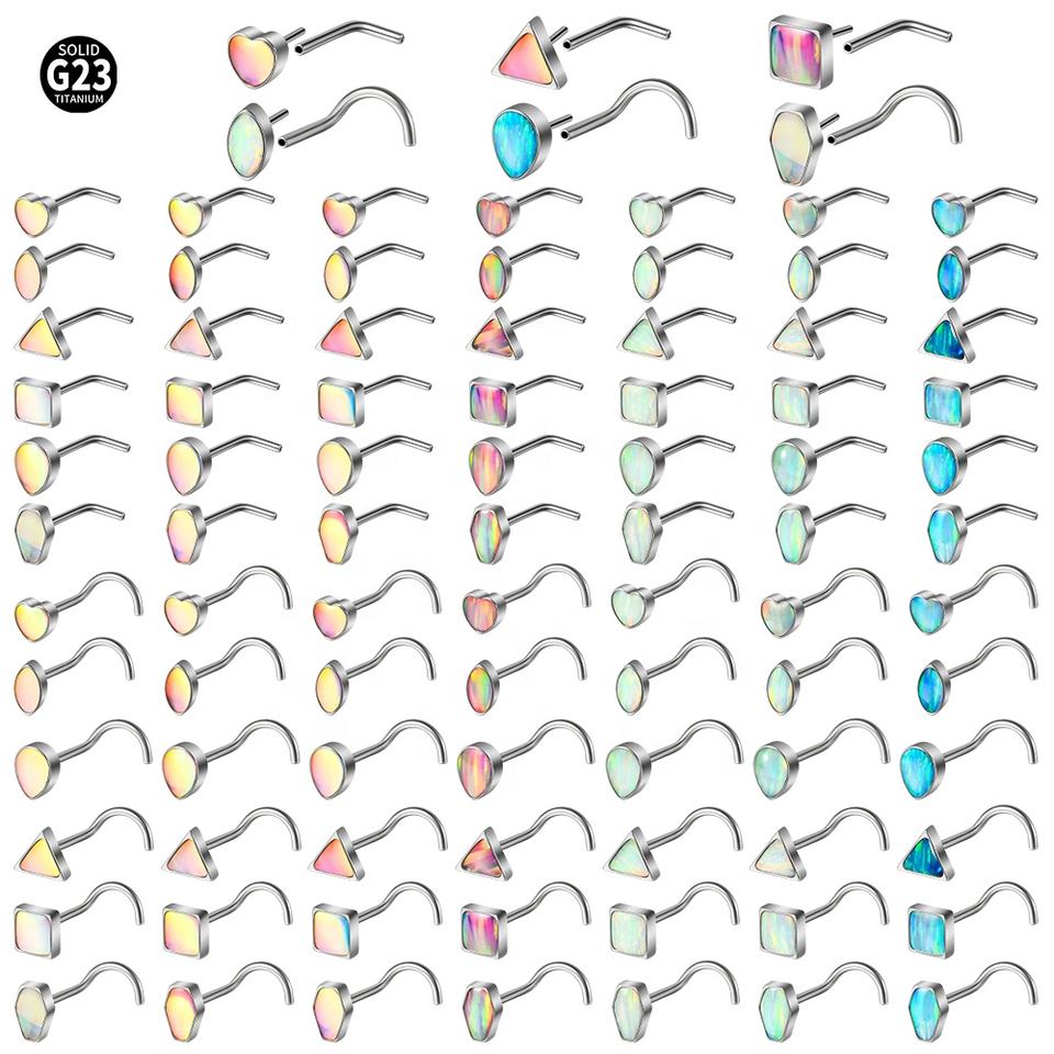 20G Titane Coeur Nez Goujons Flash Film Opale Nez Anneaux Push-in Piercing Cercueil Carré Narine Piercing Bijoux Pour Femmes Hommes