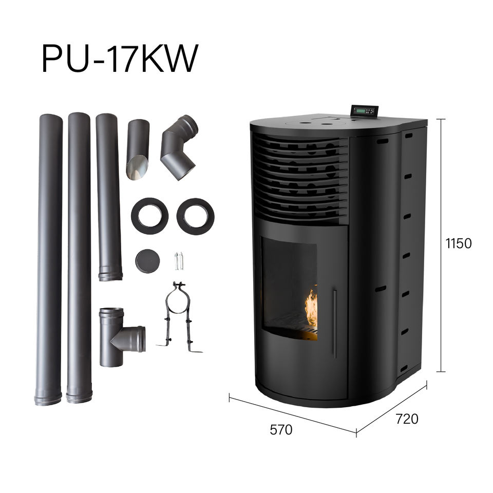 Poêle à granulés de bois autoportant en fonte de conception moderne 20KW gazogène intérieur automatique économie d'énergie pour le chauffage du salon