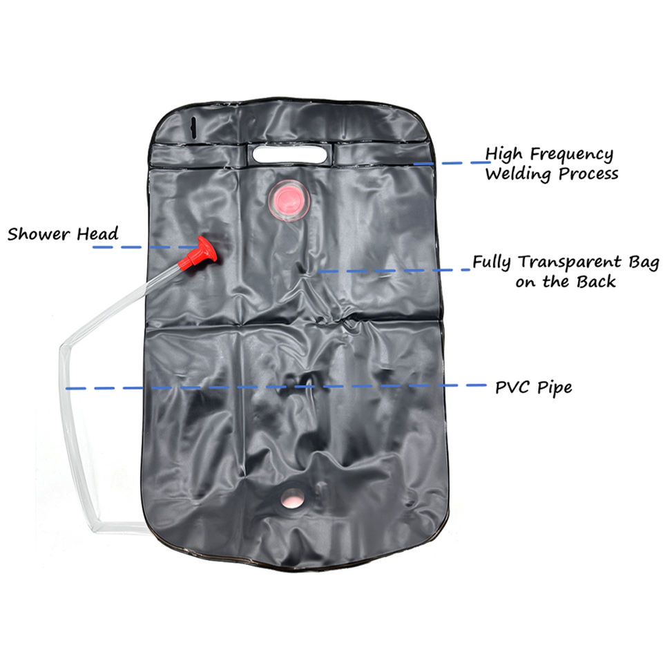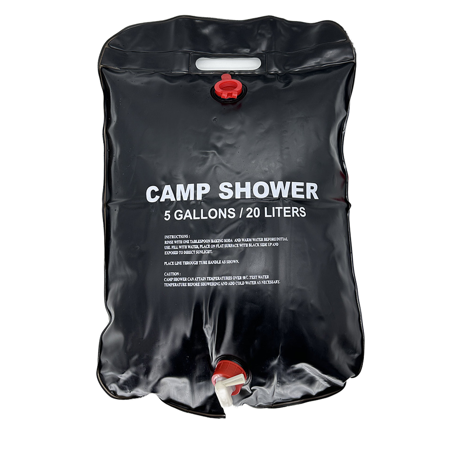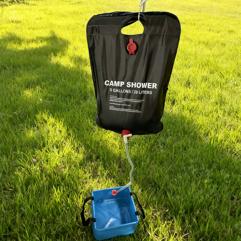 Douche solaire pliable d'urgence 20L, sac de douche solaire étanche pour camping, avec pommeau de douche amovible et interrupteur marche/arrêt