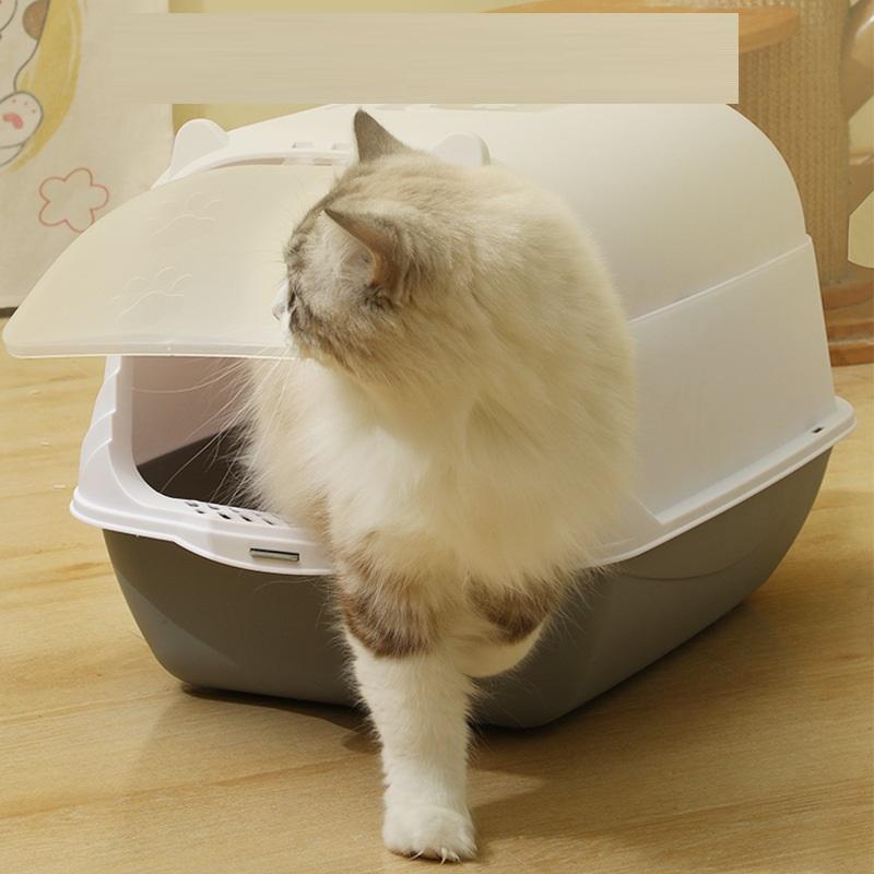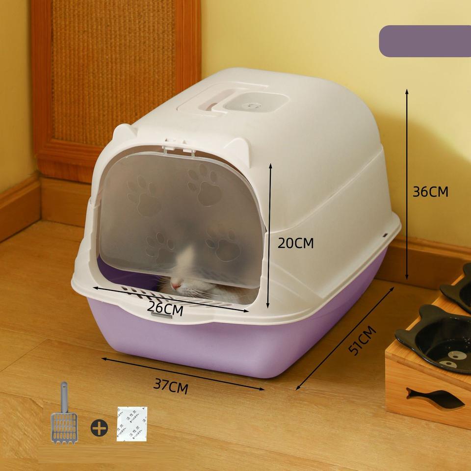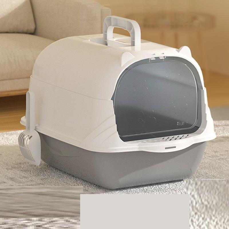 Bac à litière pour chat fermé de 20 litres avec rabat de porte avant en PP et bac à litière couvert facile à nettoyer avec poignée