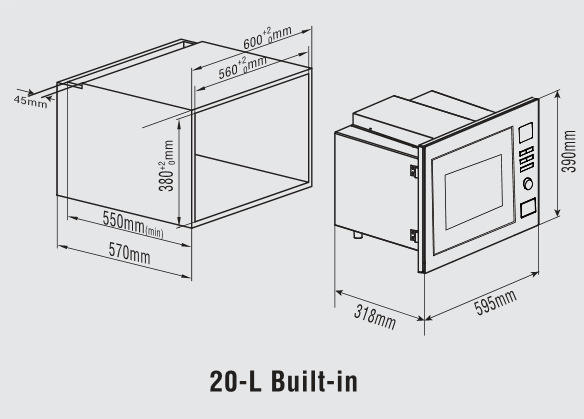 Mini cuisine, four à micro-ondes intégré, point d'accès, micro-ondes, micro-ondes intelligent, 20l
