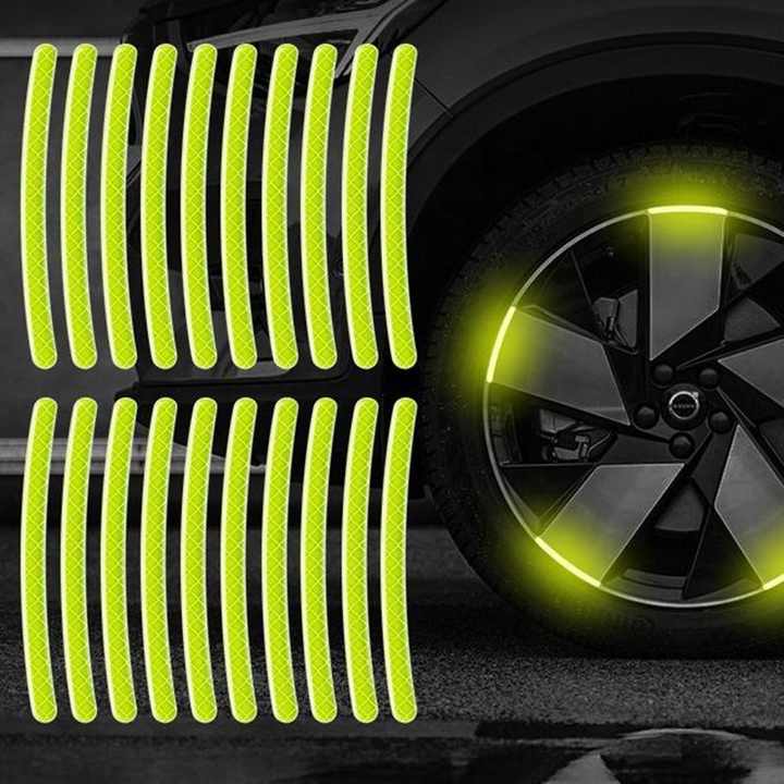 20PCS Bright Reflective Car Wheel Hub Stickers Auto Decorative Stripe Stickers Night Safety Warning Car Motorcycle Stickers