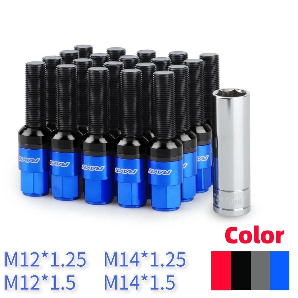 Boulon de roue conique en acier, 20 pièces, écrous de roue avec capuchons pour boulons et manchons M12 * 1.25 M12 * 1.5 M14 * 1.25 M14 * 1.5 pour BMW