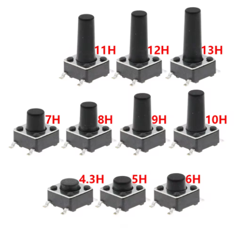 Interrupteur à bouton-poussoir tactile 12V cuivre 4 broches SMD micro-interrupteur 6X6X5 4.3 5 5.5 6 7 8 9 10 11 12 13 15MM TV jouets bouton à usage domestique 20 pièces