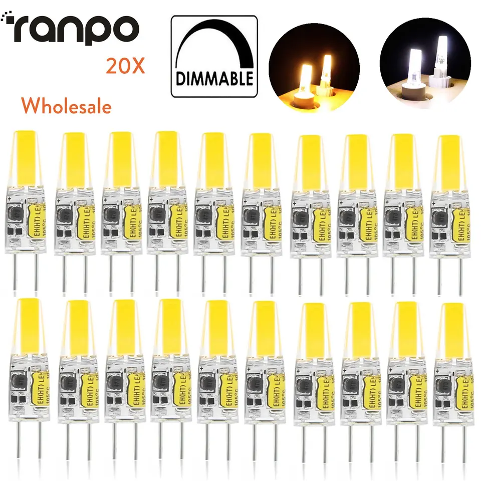 Lot de 20 ampoules LED COB G4 6W, dimmables, mini AC/DC 12V 220V, lumières de bougie, remplacement des halogènes 45W pour lustre, projecteur, blanc