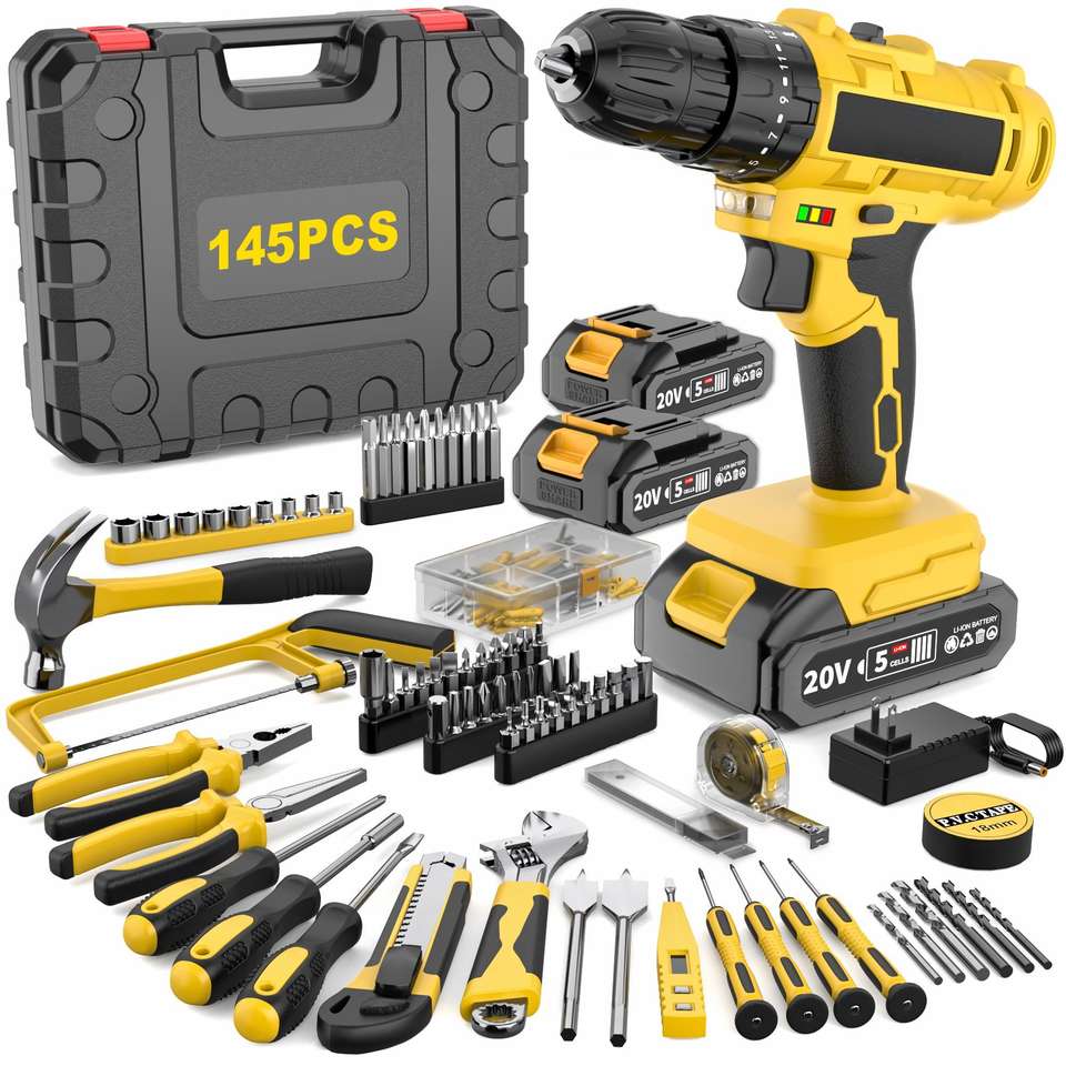 Jeu de tournevis électrique à mandrin sans clé 20V perceuse à percussion sans fil avec vitesse variable forage maximum 30mm 20V ensemble de perceuse électrique