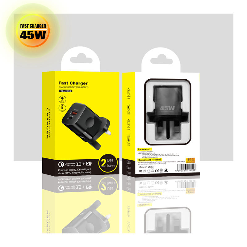 20W/35W/45W double ports USB C prise britannique chargeur rapide pour Huawei pour Samsung S24 chargeur à induction portable pliable pour ordinateur portable