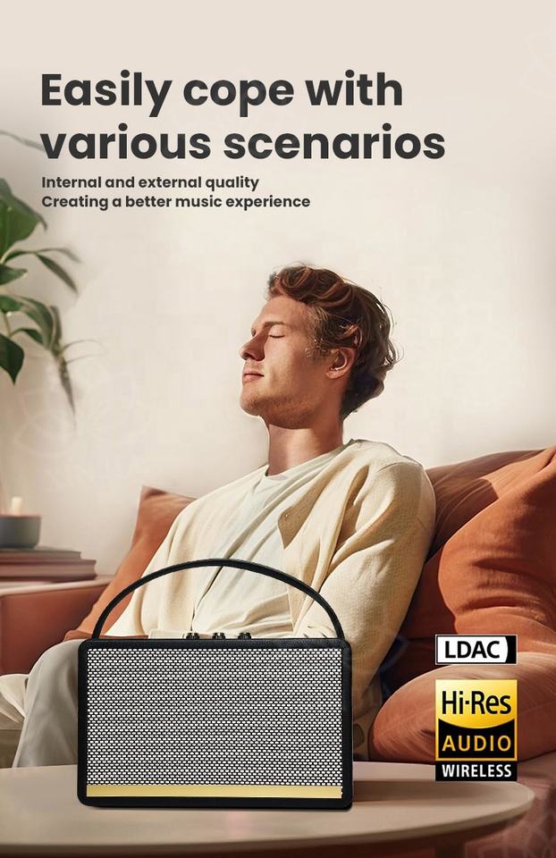 Nouvelle arrivée, haut-parleur sans fil portable de haute qualité, petit, en bois, rétro, alimenté par batterie, 20W, M17, pour fête en plein air, karaoké