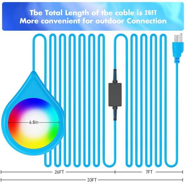 Projecteurs LED intelligents 20W pour piscine, étanches IP68, contrôle par application, lampe magnétique à changement de couleur avec cordon de 8 m pour piscines hors sol