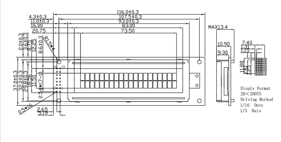 Type d'écran LCD:20X20