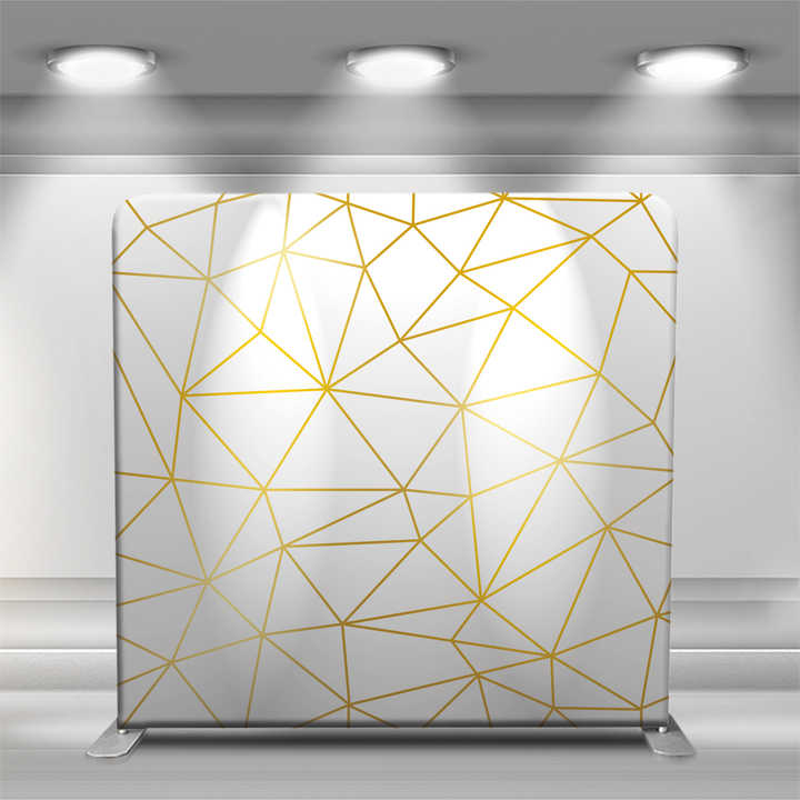 Taie d'oreiller d'exposition géométrique dorée de 20 pieds 10 pieds 8 pieds, toile de fond, tissu de tension d'affichage double face, support de photomaton, bannière