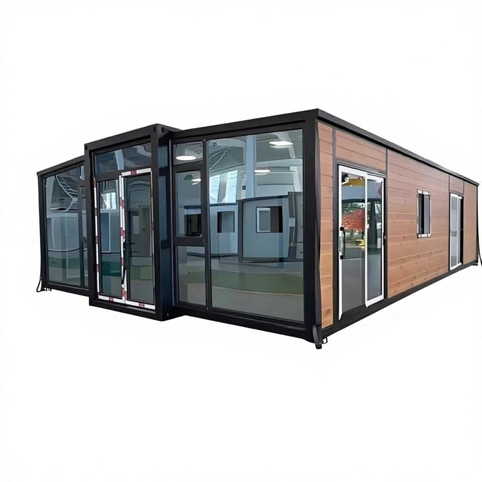 Maisons préfabriquées de luxe extensibles en conteneurs de 20, 30 et 40 pieds avec isolation supplémentaire et grande façade vitrée pour les zones tropicales