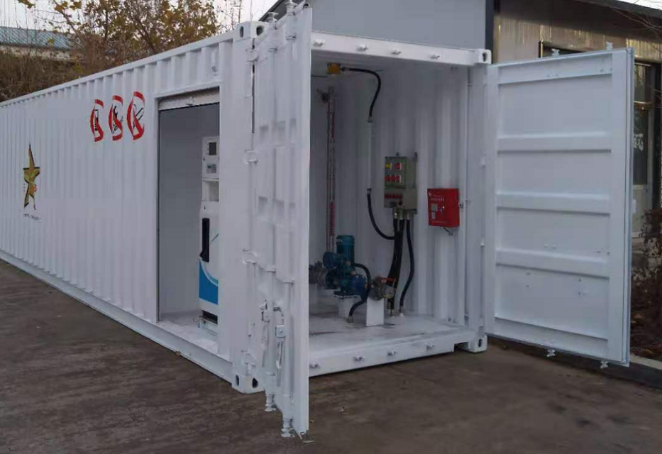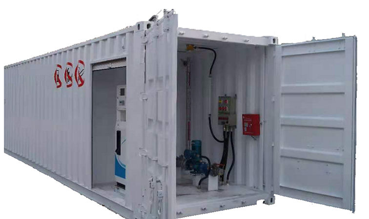Station d'essence de conteneur mobile montée sur dérapage d'usine chinoise de 20 pieds 40 pieds pour le matériel d'acier au carbone d'essence et de diesel