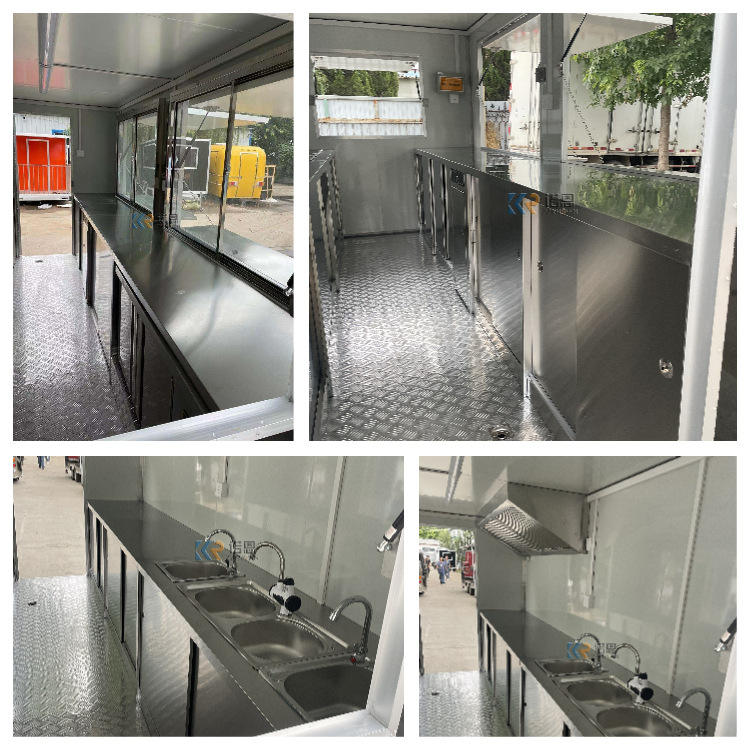20ft Mobile Fast Food Truck Trailer Stainless Steel Snack Food Coffee Shop Bar Prefab Container with Modern Office and Bathroom