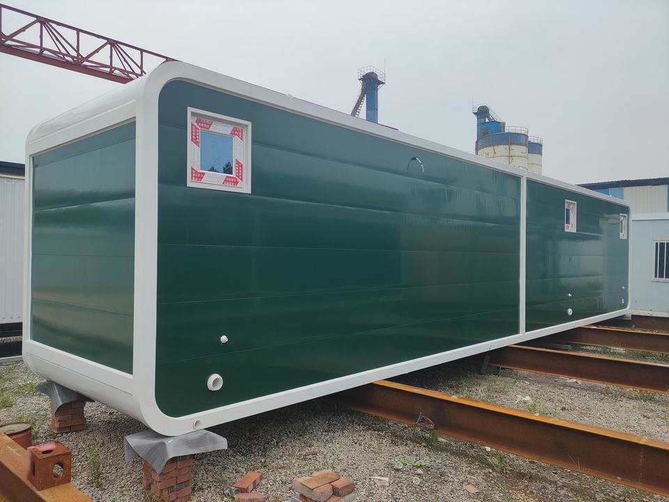 Maison conteneur contemporaine extensible de 20 pieds avec un aménagement multi-pièces à 2 chambres, hybride acier-bois, pour centre commercial, magasin, résidence