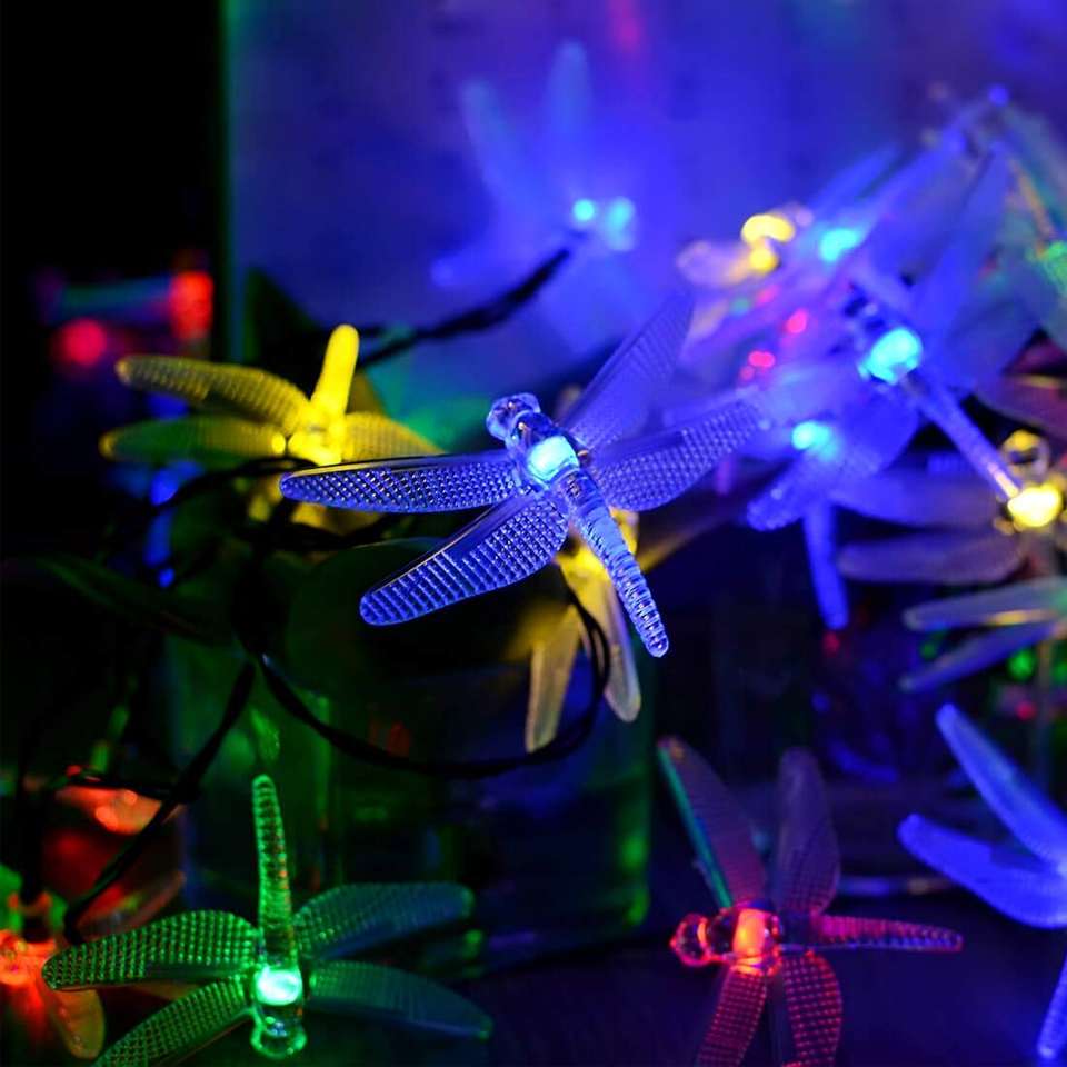 20LED libellule 8 modes éclairage de mariage solaire décoration de vacances guirlandes lumineuses blanc chaud couleurs extérieur guirlandes lumineuses étanches