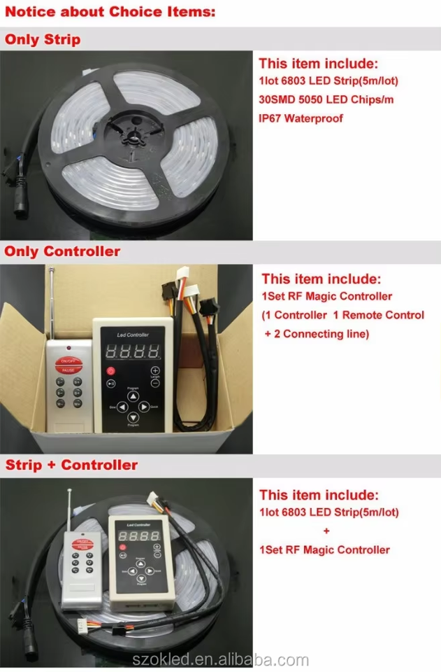 Bande LED de 20m, 30m, 10m, 5m, couleur de rêve magique RVB, étanche, IP67 5050 + IC6803 RF, télécommande + adaptateur secteur, 133