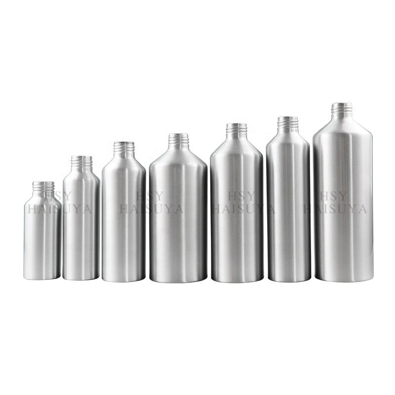 Flacons de gel douche en aluminium à épaule inclinée argentés de 20 ml à 5 litres, bouchon à vis cylindrique, parfum, lotion, huiles essentielles, savon à vaisselle