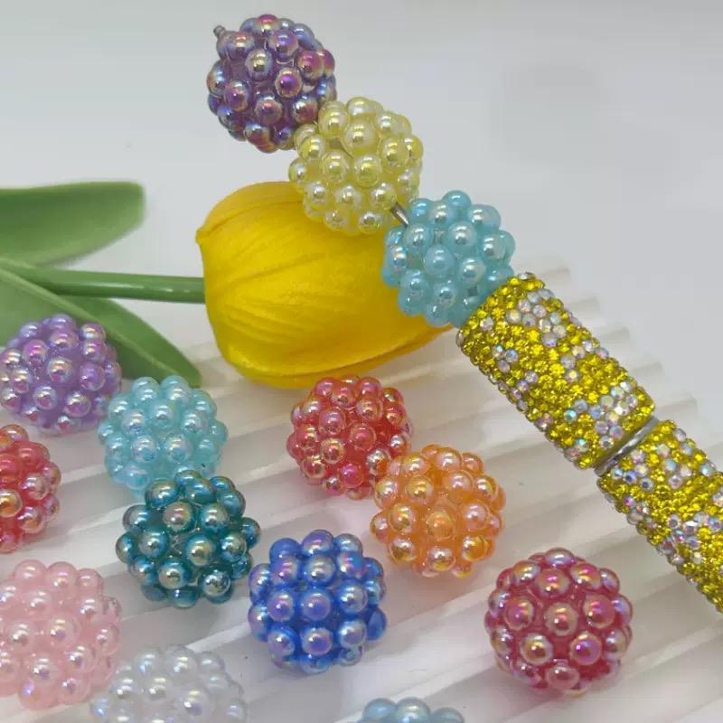 Perles acryliques de 20 mm, couleurs mélangées, perles en résine AB, strass, perles rondes pour stylo, porte-clés, collier épais, fabrication de badges, fabrication de stylos