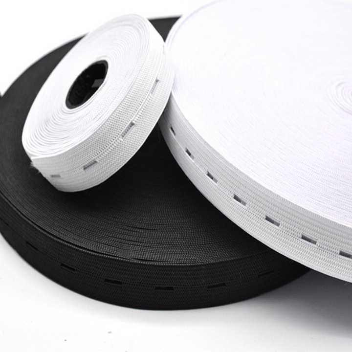 20mm Thin and Narrow Buttonhole Elastic Band in Black and White Woven Webbing Polyester Rubber Unique Product Category