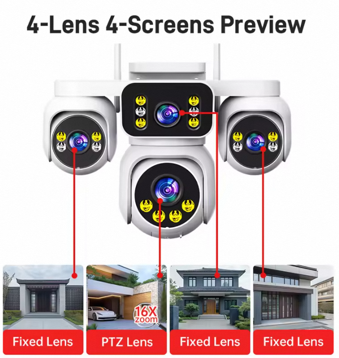 L'homme De Suivi De Mouvement, Vision nocturne, À l'épreuve du vandalisme, Détection de mouvement, Détection sonore, Imperméabilisez/protégez contre les intempéries, Built-in Sirène, PAN-TILT, Audio bidirectionnel, Audio à sens uniqueUsages spéciaux