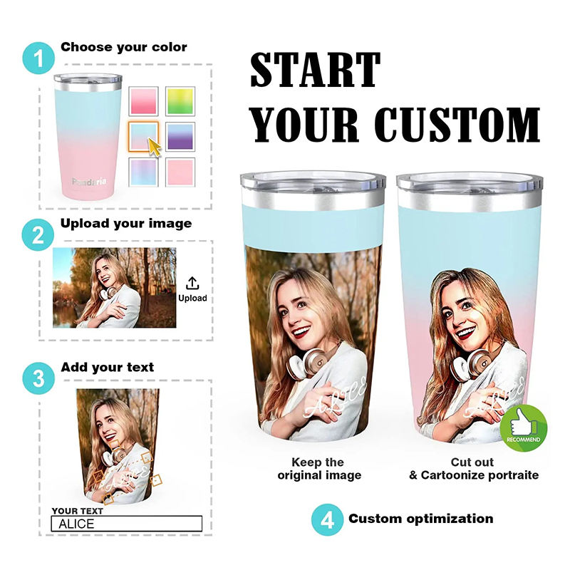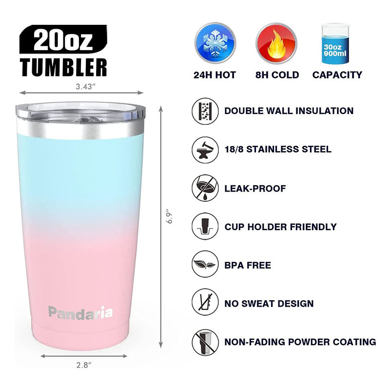 Gobelet Isotherme Personnalisé 20oz à Double Paroi, Revêtu par Poudre, Tasse de Voiture Isotherme en Acier Inoxydable avec Couvercle