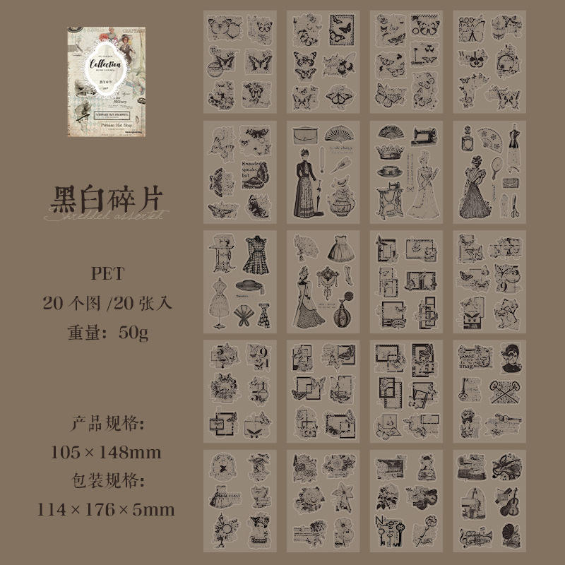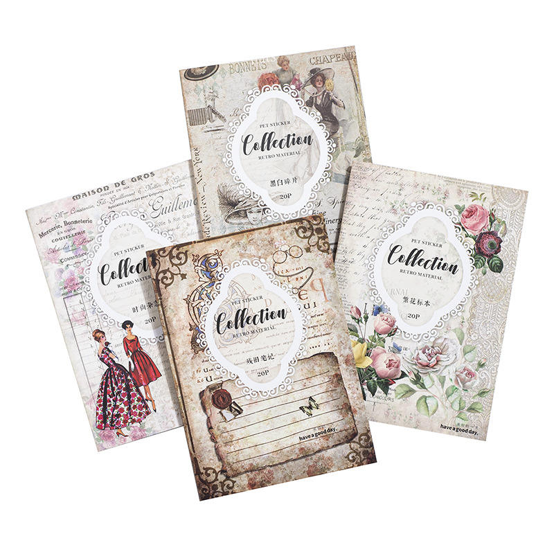 Lot de 20 pièces d'autocollants de livres assortis, séries rétro, compte à main, matériel de décoration, Collage, 4 modèles