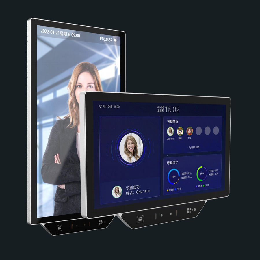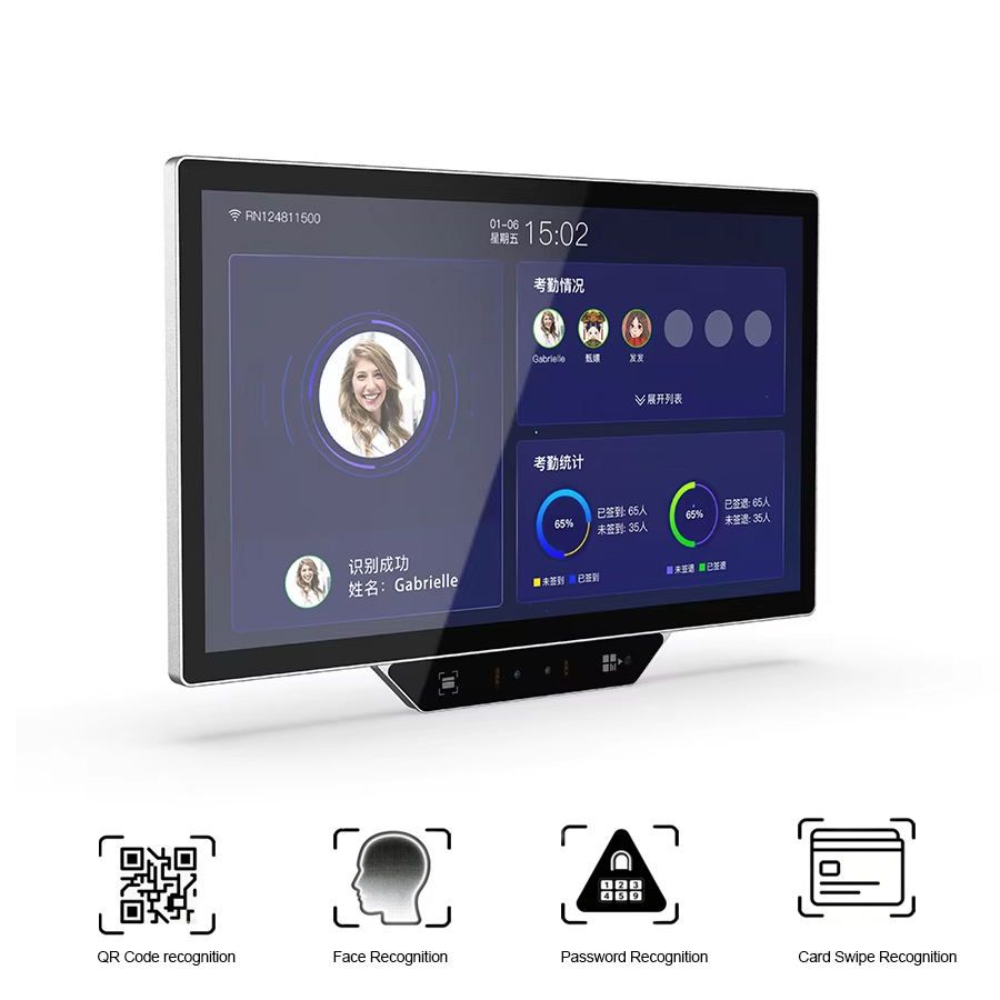 Lecteur de cartes 21,5 pouces, grande taille, contrôle d'accès biométrique, machine de pointage des employés, détection faciale