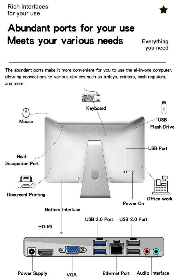 Ordinateur de bureau tout-en-un de 21,5 pouces avec écran tactile, un ensemble complet de clavier et de souris avec plusieurs interfaces 4+128