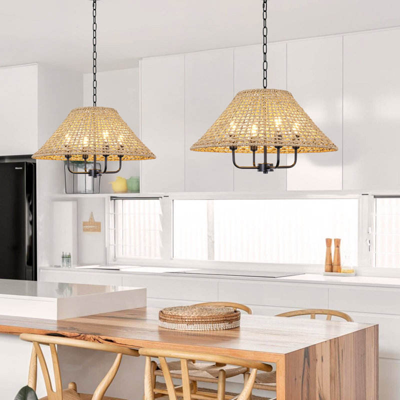 21.6 \ "Lumière Dimmable Tissé À La Main Tambour Lustre Rotin Naturel Bohème Pendentif pour Meubles De Salle À Manger