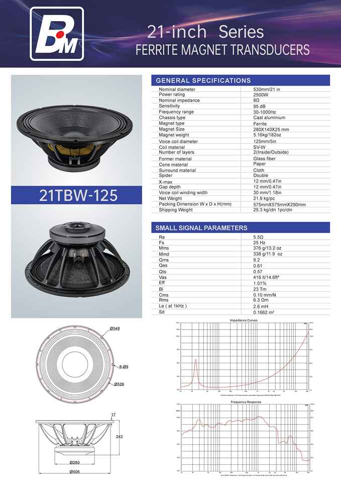 Diamètre de bobine de voix:125mm/ 5 pouces