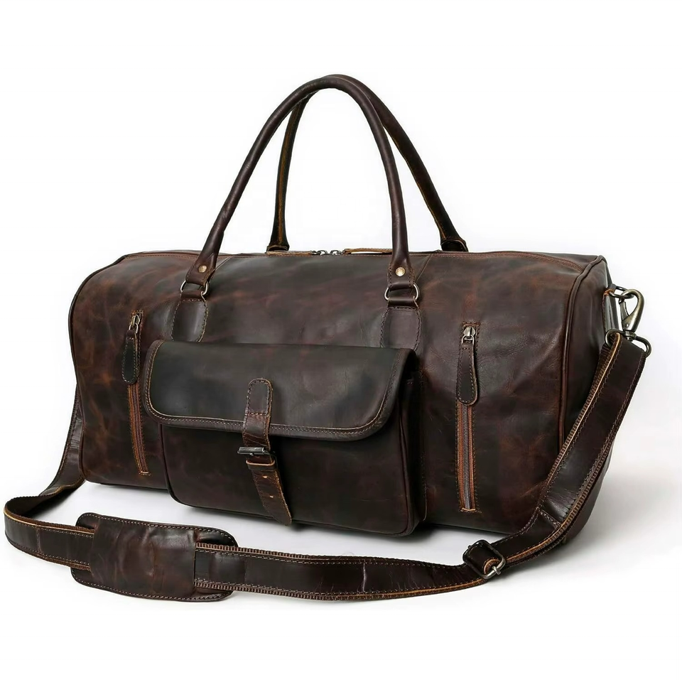 Sac de voyage en cuir pleine fleur de 21 pouces pour hommes et femmes, compagnon idéal pour la gym et les voyages