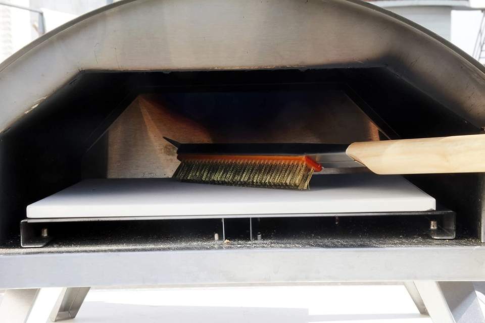 21 Inch Pizza Stone Brush with Scraper - Perfect Cleaning Tool for Outdoor Portable Pizza Oven, with Wood Handle & Brass Bristle
