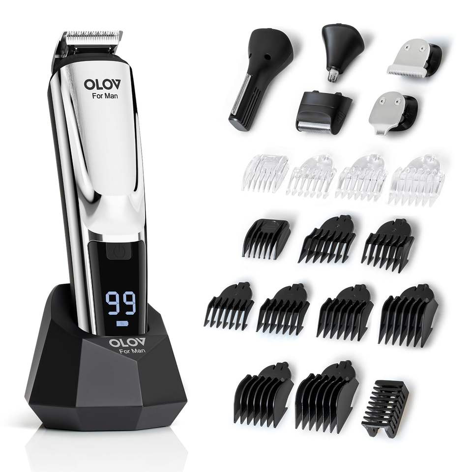 Kit de toilettage pour homme 21 pièces, rasoir électrique, tondeuse à poils de nez, tondeuse à cheveux sans fil, étanche, alimentée par batterie, tondeuse à moustache