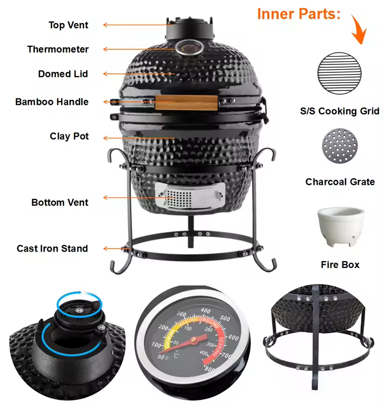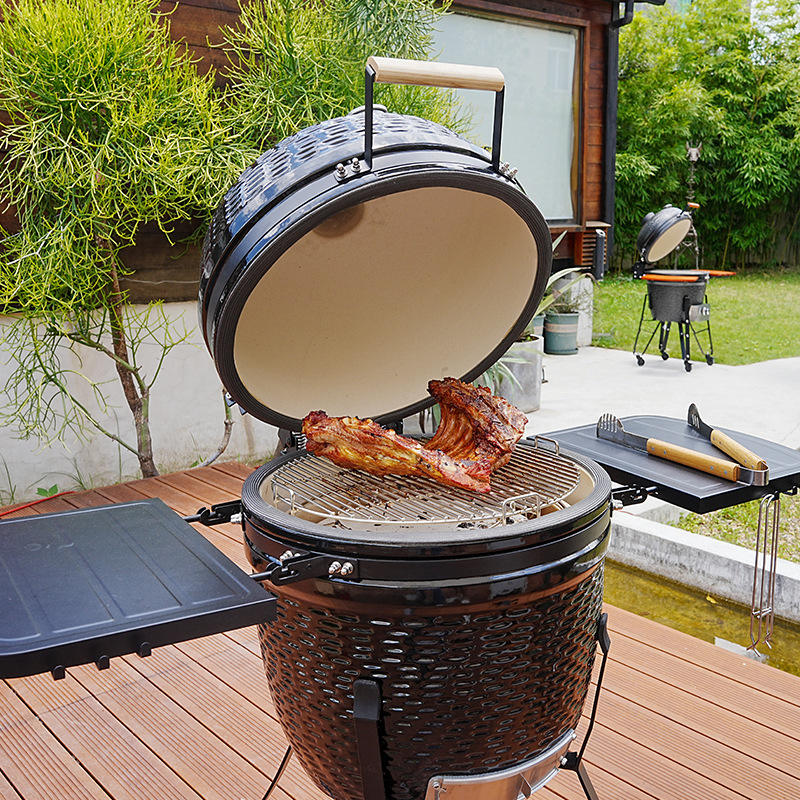 Plaques en céramique divisées Kamado de 21 pouces, barbecue d'extérieur et four en céramique à braiser avec des caractéristiques de pizza américaine et de charbon de bois