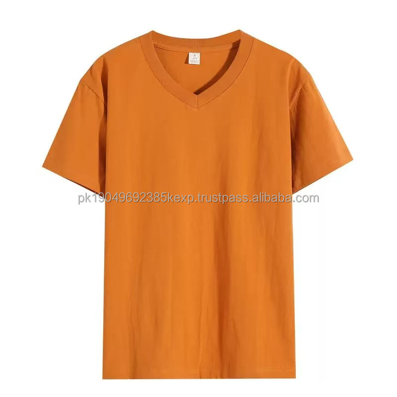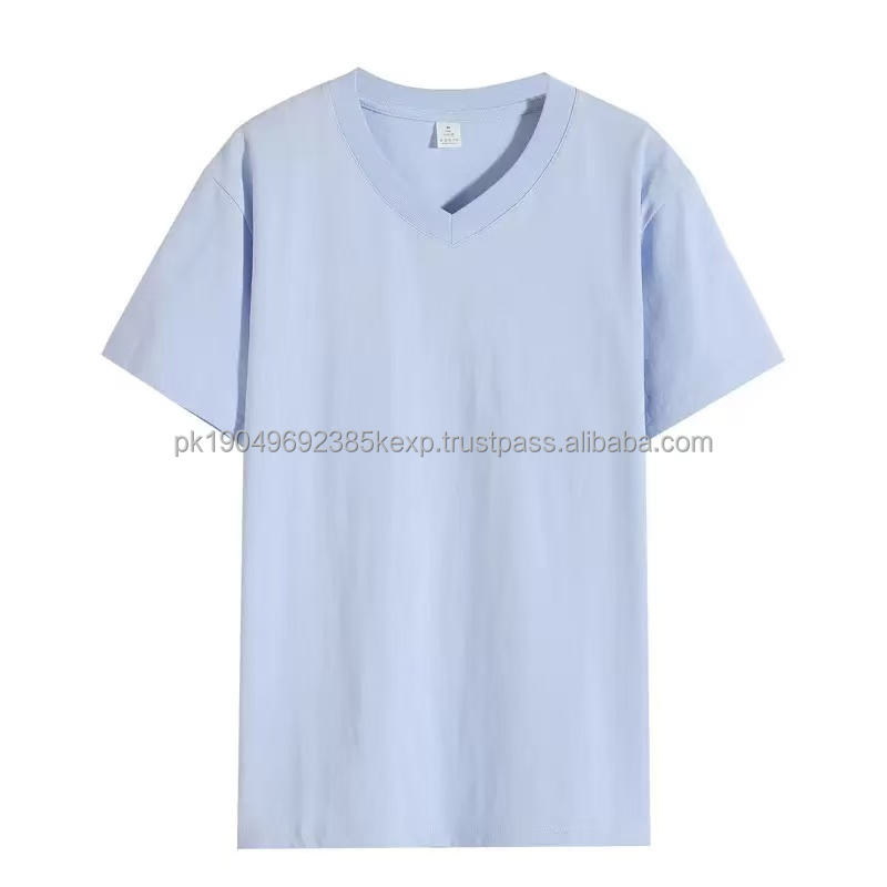 210G 100%Cotton Summer Regular Fit Man Tshirt Solid Color Custom Logo Printing Men's White V-Neck Basic T Shirt