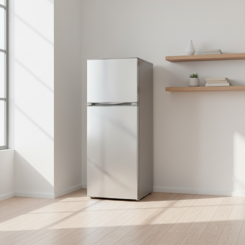 Réfrigérateur 210L en acier inoxydable avec congélateur supérieur et système anti-givre