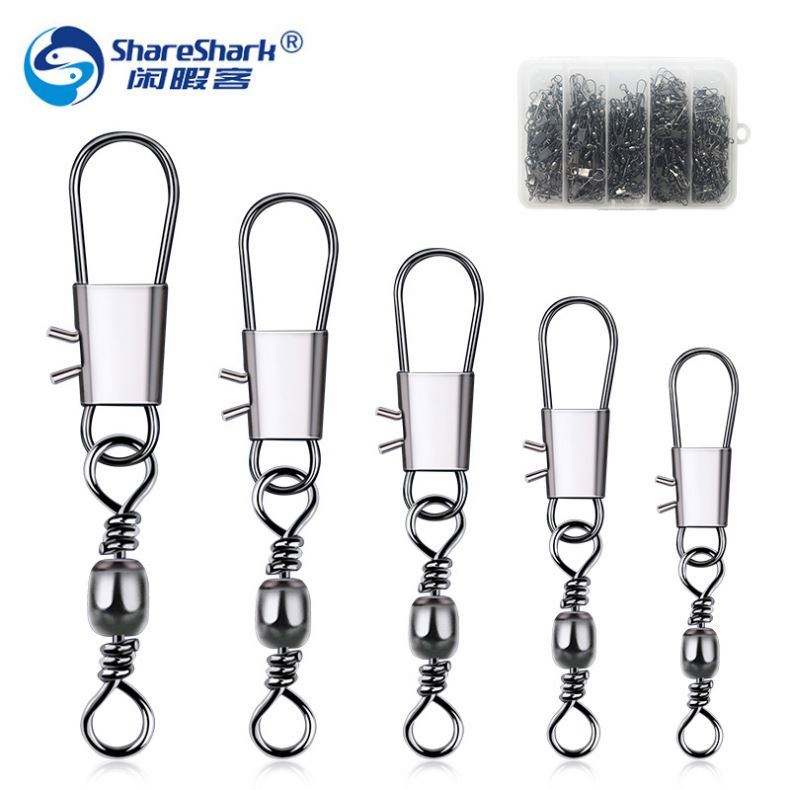 210 pièces d'accessoires de pêche : Émerillons roulants avec agrafes de sécurité, Émerillons à barillet à changement rapide et à verrouillage, Connecteurs à roulement à billes