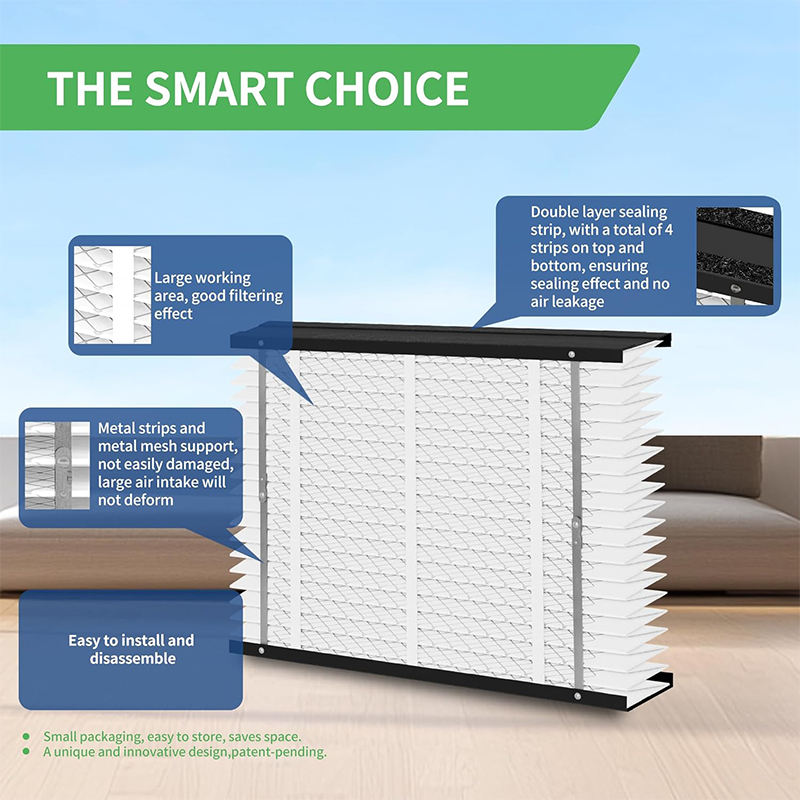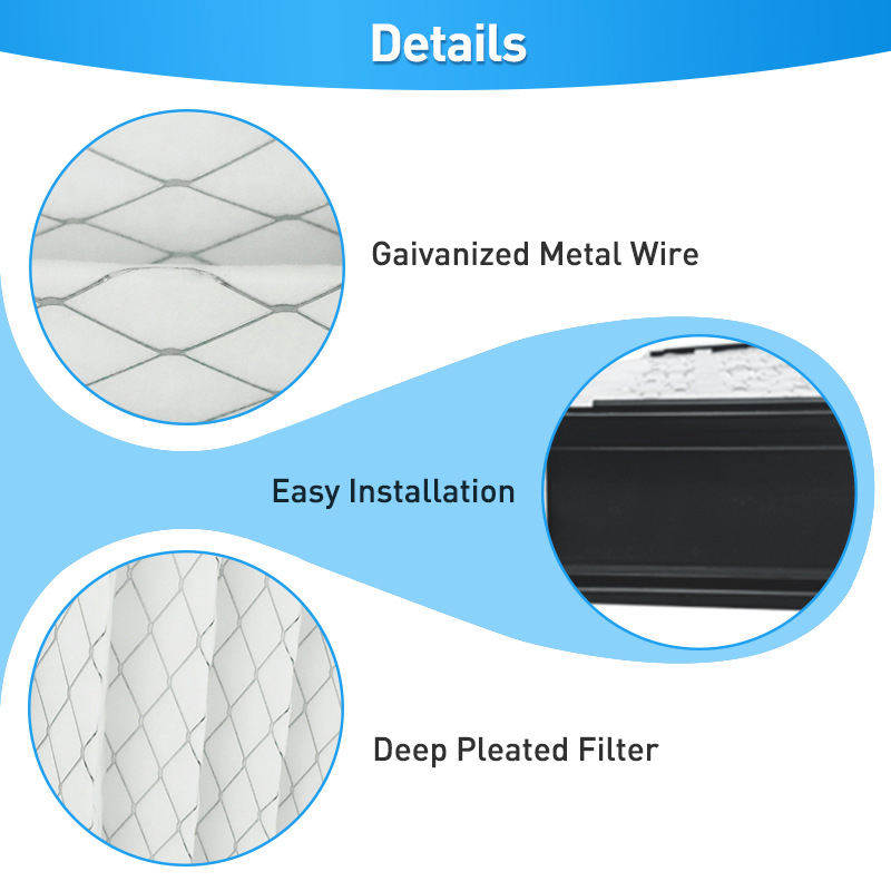 Haute efficacité, faible résistance, forte capacité de rétention de poussière, flux d'air uniforme.