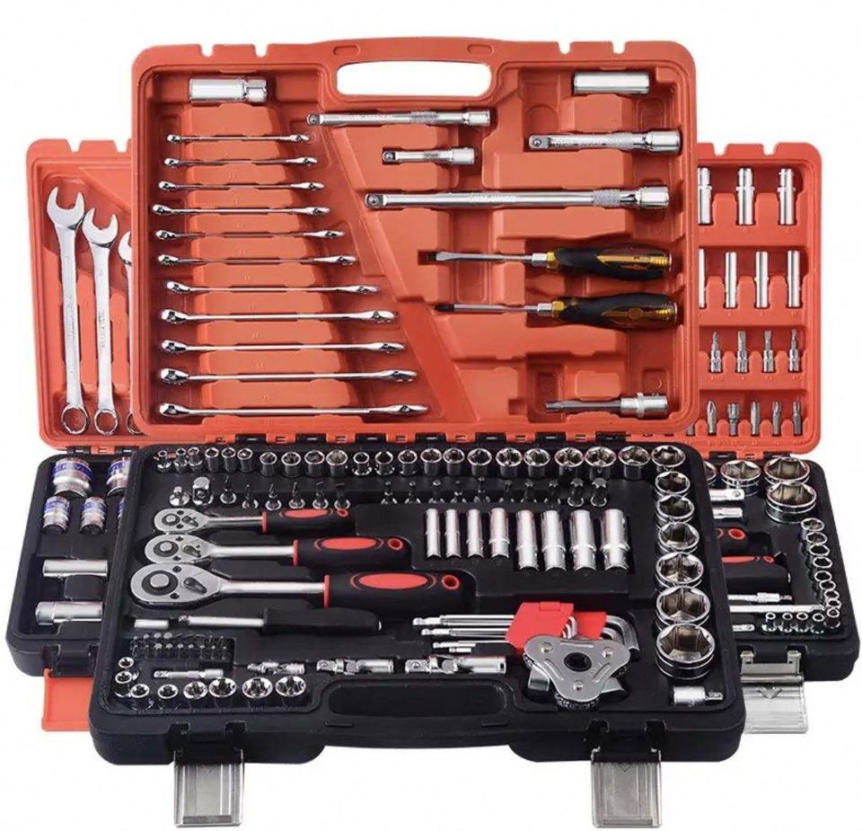 Kit d'outils mécaniques de réparation automobile 216 pièces, boîte robuste en acier inoxydable à 1 tiroir, support OEM, avec lime à métal et clés