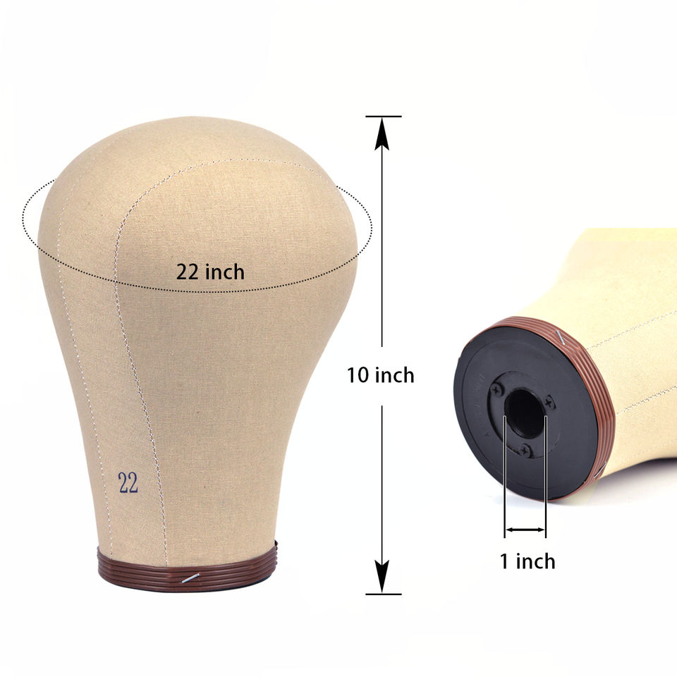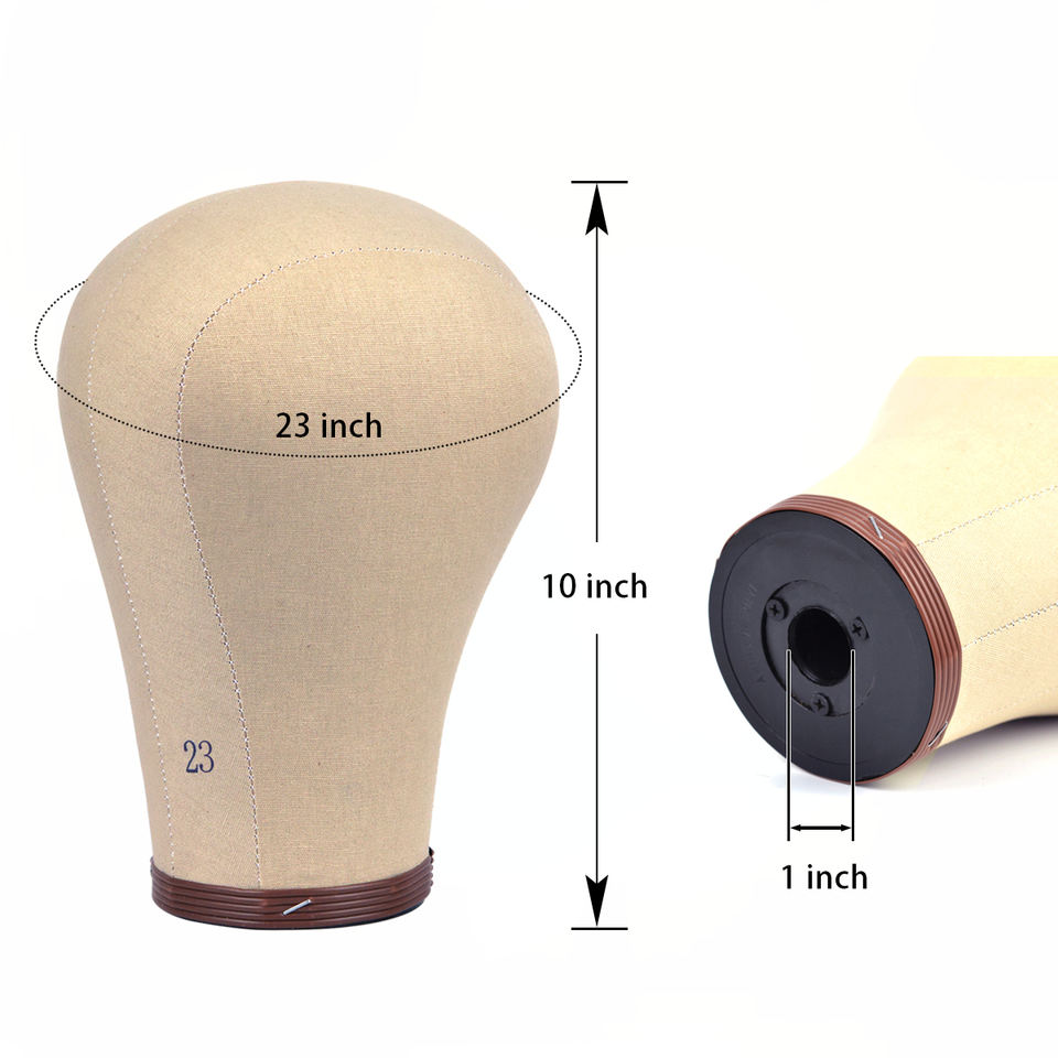 Tête de mannequin en toile de liège pour perruques de 21/22/23 pouces, avec support et trous de fixation