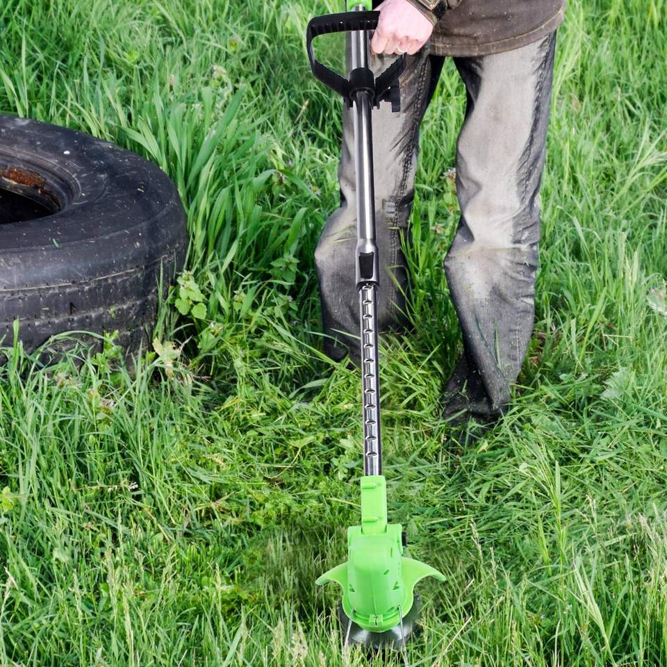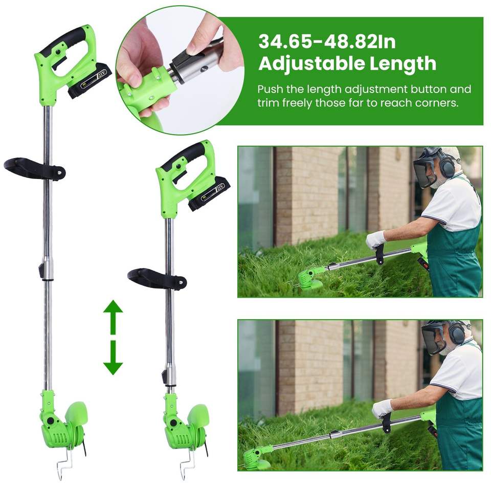 21V 300W Cordless Lawn Mower 18000M/Min Rechargeable Grass Trimmer Stainless Steel Plastic Blades 2 Batteries Goggles Gloves