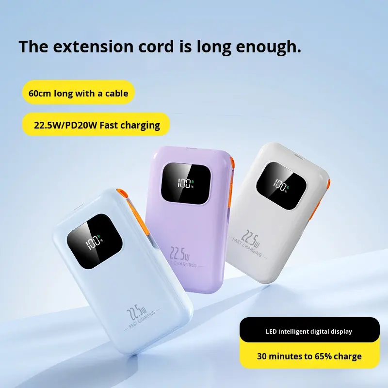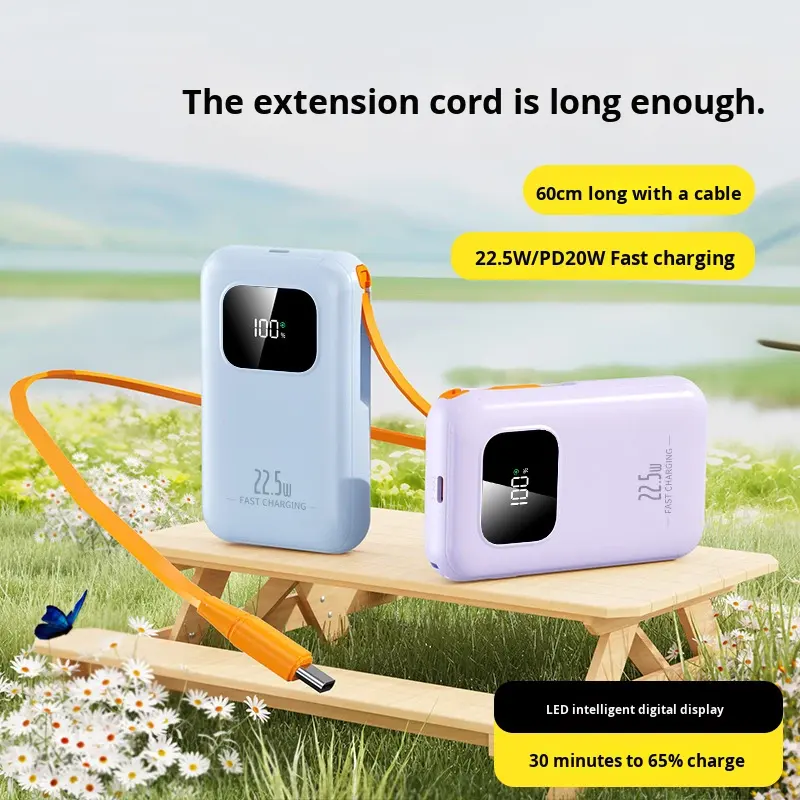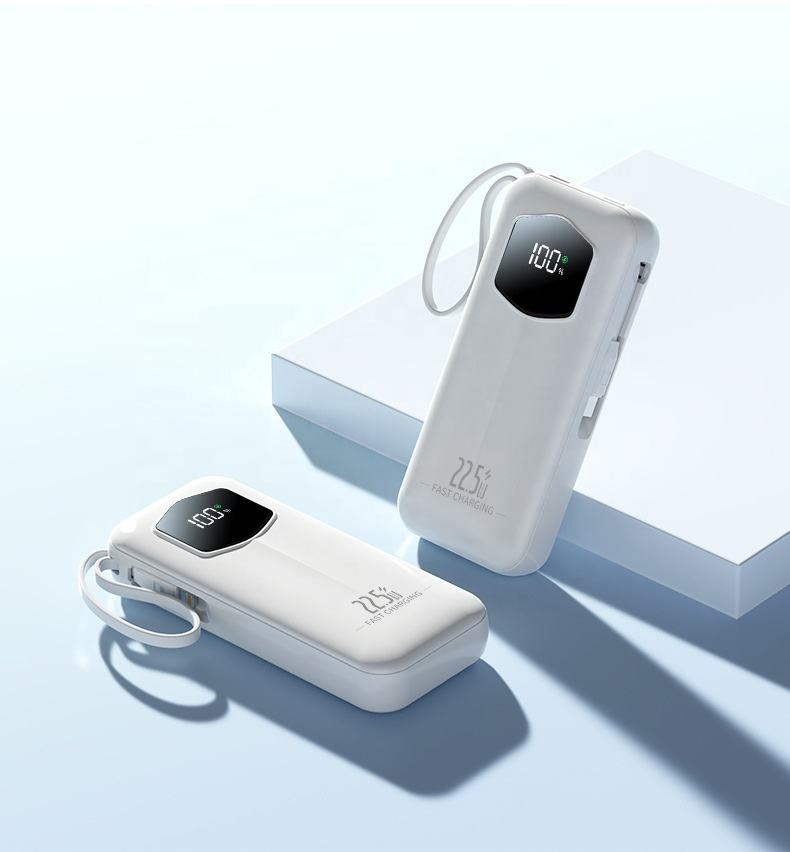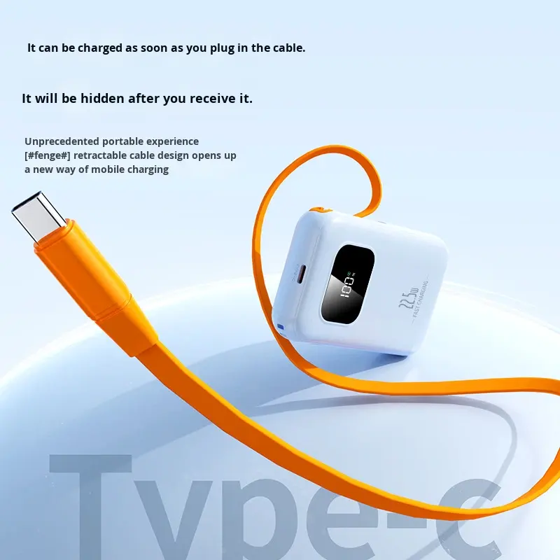 Banque d'alimentation à batterie Li-polymère haute capacité avec charge rapide 22,5 W, type-C rétractable, avec logo personnalisé