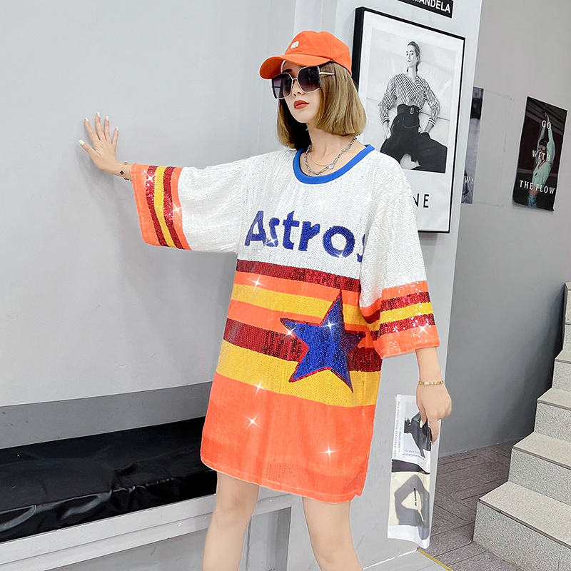 22 couleurs, maillot de football de l'équipe de jour de match, sequins Astros, hauts, maillot rétro, t-shirts à sequins pour femmes