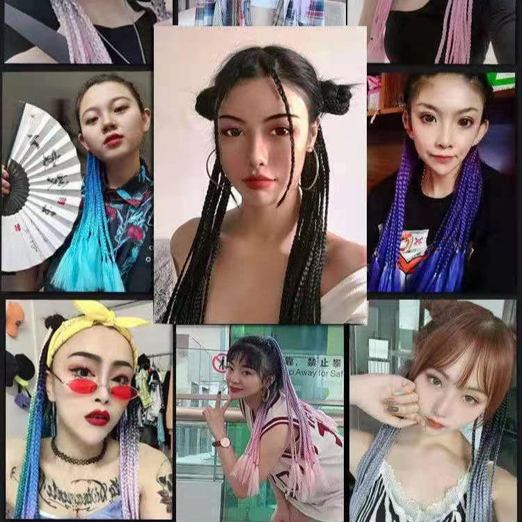 22 pouces 12 pièces/ensemble Gradient synthétique tressage queue de cheval Extension de cheveux 2 3 4 couleurs mélangées cercle torsion fibre haute température