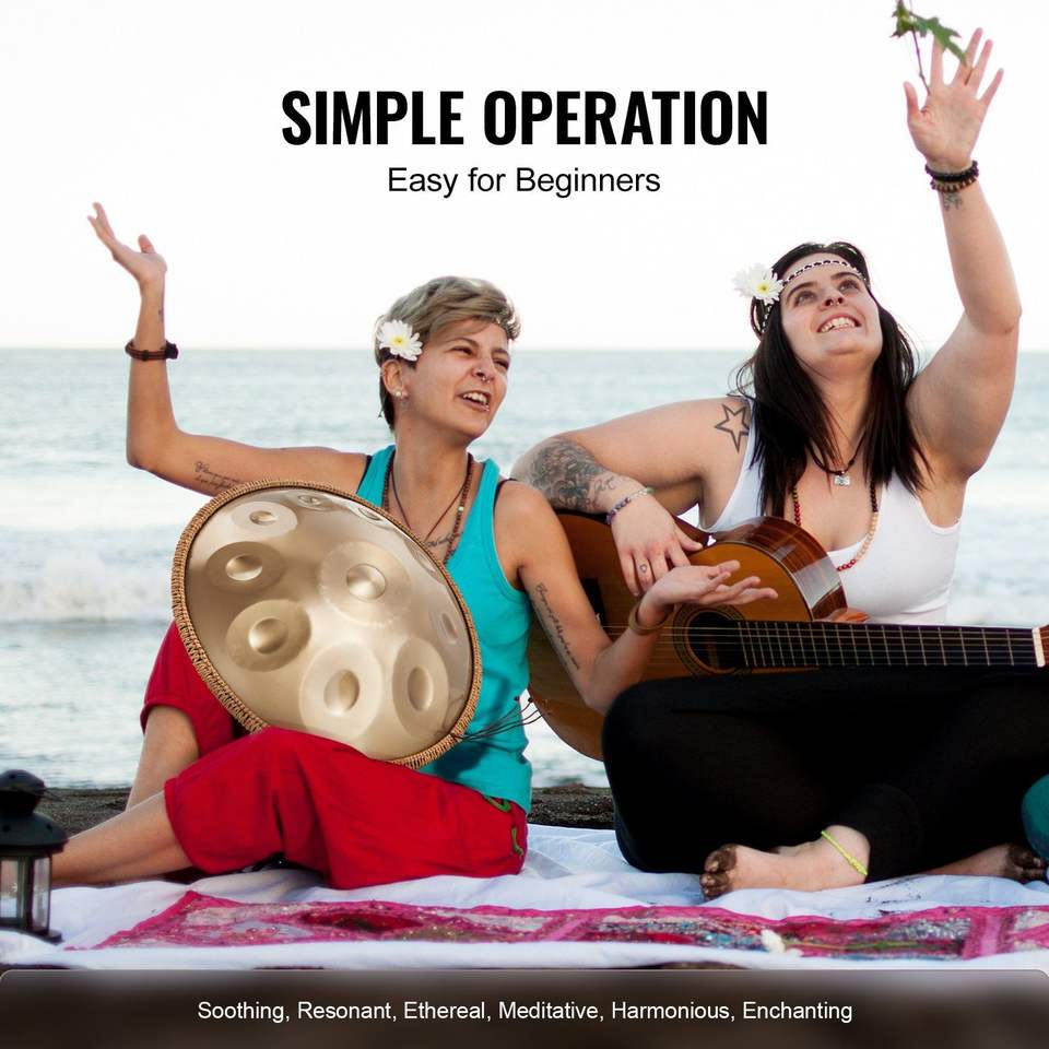 Handpan en Ré mineur de 22 pouces avec 10 notes, 432 Hz, support, baguettes et sac de transport inclus