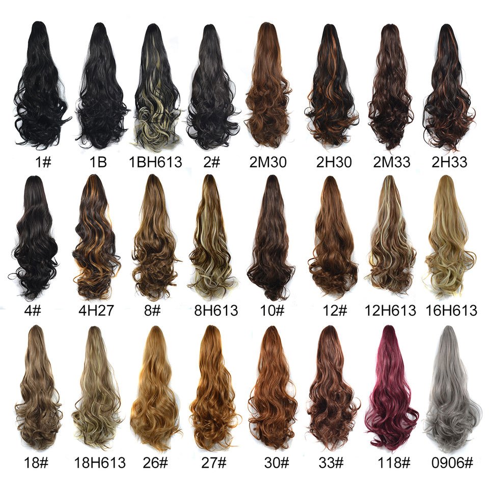 22 pouces de long ondulé bouclé pince à griffes queue de cheval postiches Extension coiffures synthétique noir naturel queue de cheval pour femme noire